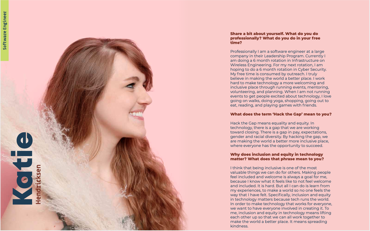 The Hack the Gap book showcases the diverse voices of women and non-binary individuals in the Minnesota tech community. It features inspiring stories of people making significant contributions to established companies, founding startups, and leading others in Minneapolis, St. Paul, and beyond. These narratives highlight unique journeys and break barriers for future underrepresented talent in tech.